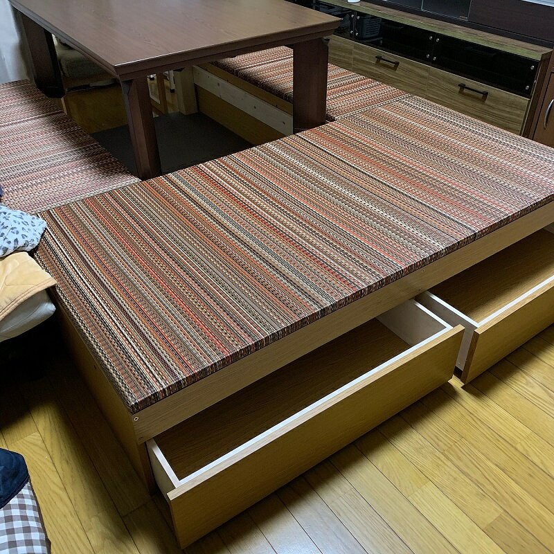 天板(へりなし畳美草)と木部(ボックス部)の構成で、天板の下は収納スペースになっています。
