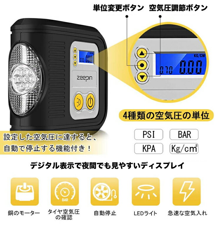 【操作簡単・コンパクト】 空気圧を設定し、車から給電を行い、起動スイッチを押すだけで、自動的に入れられます! 簡単に出来、コンパクトでそして、収納バックも付き車のスペースに邪魔になりません。