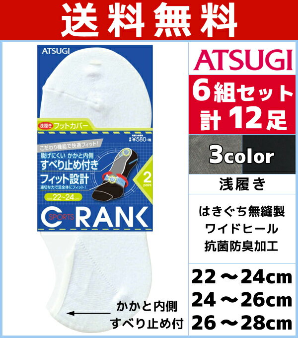 送料無料6組セット 計12枚 SPORTS CRANK スポーツクランク 浅ばき 男女兼用 メンズソックス レディースソックス フットカバー 2足組 くつした くつ下 靴下 アツギ ATSUGI 通販